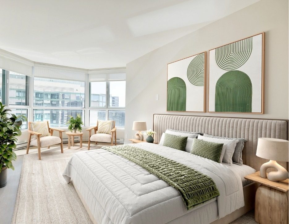 Central A/C, heat included, water included, roller blinds, blackout bedroom blinds (select), balcony (select) -