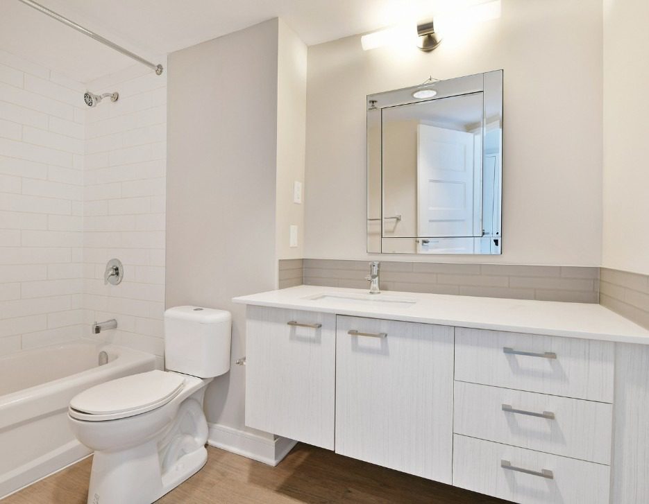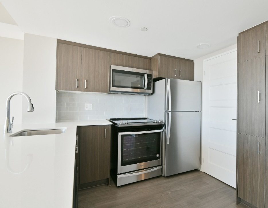 Luxury vinyl flooring, quartz countertops, tiled kitchen backsplash, in-suite storage (select)